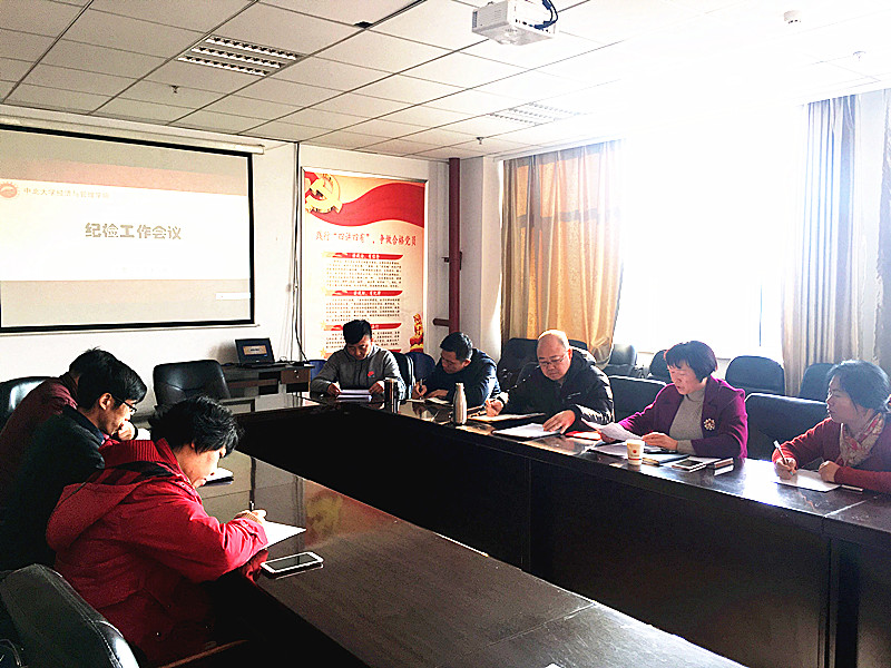 院党委书记王琳同志作了经济与管理学院党风廉政建设工作报告。回顾总结了学院2017年党风廉政建设工作。经济与管理学院围绕着教育、制度和监督三个要素,贯穿一条主线,坚持三个结合开展学院党风廉政建设工作。以支部为重点,以党员、教师为主体,以制度来规范,以监督来强化,把党风廉政建设贯穿于“廉洁办学,廉洁从教,廉洁自律”这一主线始终。坚持将党风廉政建设与制度建设相结合,建立廉政工作机制;坚持将党风廉政建设与氛围营造相结合,形成廉洁文化氛围;坚持将党风廉政建设与微教育相结合,创新工作方式。