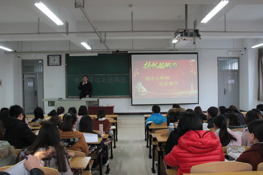 讲座围绕银行概括、招聘要求、岗位优势、职场启示录四个方面展开。首先,田勇学长介绍了我国现阶段银行分类以及银行的管理机制和机构设置,让在场听众对银行有了初步了解。紧接着田勇经理分享了他在银行的工作经历,并详细讲述了如何在强大职场压力之下合理分配时间,积累经验、提 高自己。最后,田勇以学长的角度劝诫在场学生珍惜校园时光,提高专业素养和实践能力,为以后更快适应工作岗位奠定基础。讲座最后,周娟美老师进行总结发言,对田勇经理的到场表示感谢并表达了对在场学生的殷切期望。