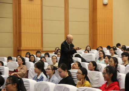 沙永杰教授通过对国内外最佳发明的分析对比,引出“相同的想法,不同的应用”这一观点,指出TRIZ创新方法就是一种有效的应用性创新理论。沙教授为大家简要介绍了TRIZ的四十发明原则,并就“合并”与“机械系统替代”两条原则结合实例重点讲解,提出TRIZ的主要想法是从发明原则联想,构思新的创意。沙教授认为“学生创新而非科学家创新,学生创业而非资本家创业”,建议大学生开发具有创意、轻技术含量且可以满足刚性需求的生活化商品。讲座过程中,沙永杰先生与师生亲切交流、互动频繁,开拓了学生的创新思维,堪称一堂最为成功的创新教育课。